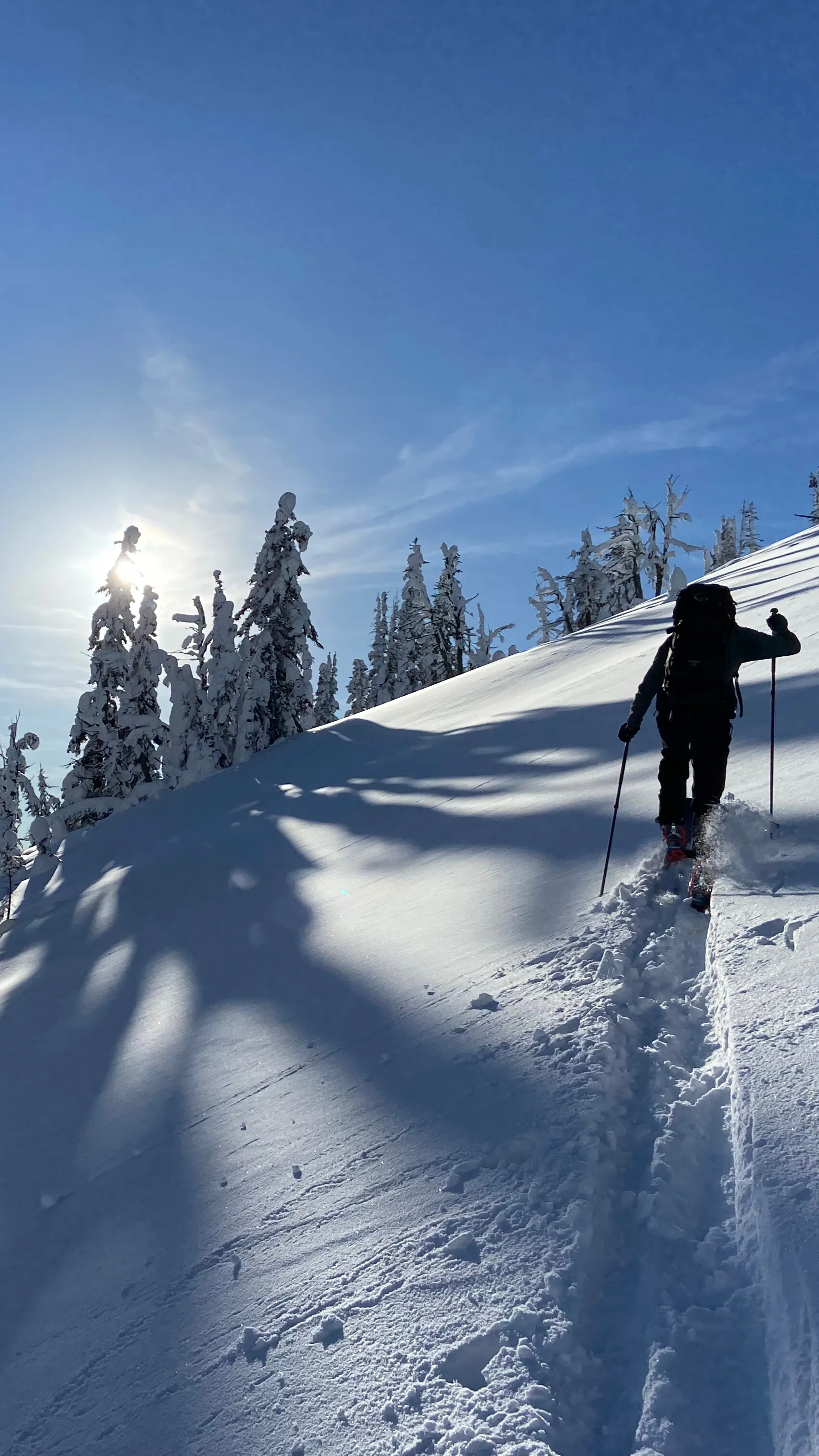 Unlike classic cross-country skis that are best suited for groomed tracks, 'Nordic Touring' skis are designed for exploring off-trail terrain. The gear includes wider (more stable) skis with steel metal edges, durable and warmer boots, and bindings that offer more freedom of movement. Perfect for adventurers who want to venture beyond established trails.